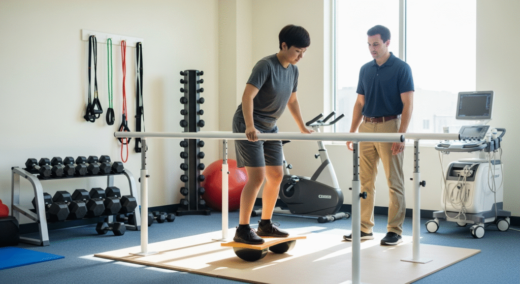 Dor persistente, limitação de movimento, fraqueza, desequilíbrio, pós‑operatório, sequelas neurológicas ou cardiorrespiratórias.